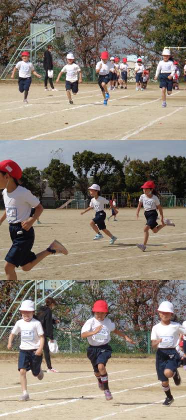 10月27日(水)1年生 公開日 2021/10/27 更新日 2021/10/27 1年 今週土曜日にせまった体育参観に向けて各学年の子どもたちはがんばっています。 1年生は徒競走50m走の練習です。最後まであきらめずに走っていました。