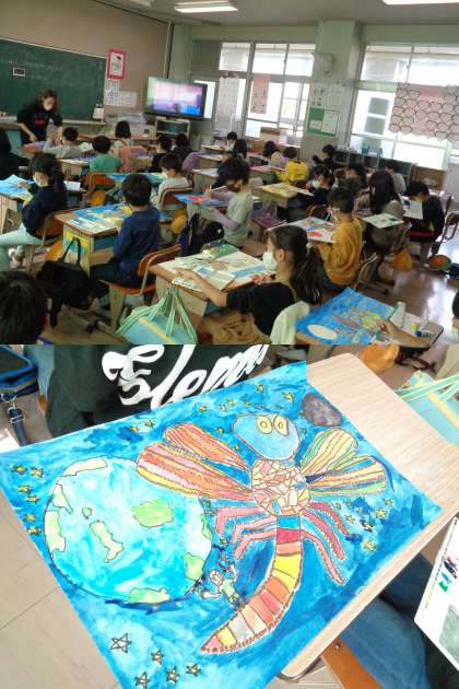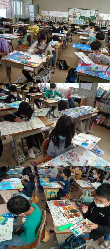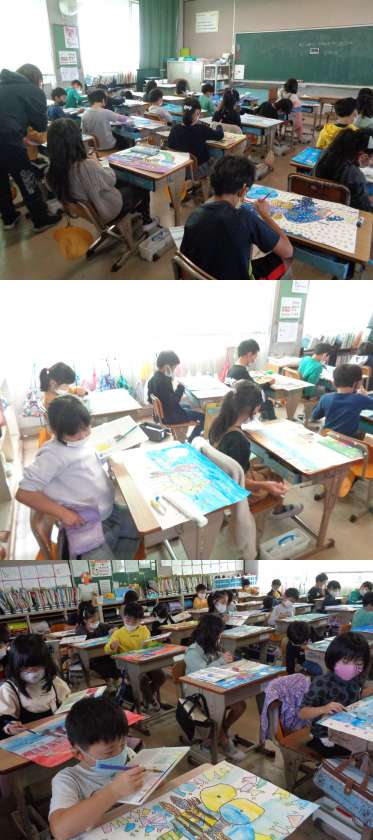 「とんぼにのって」が完成間近です。 見るたびに色鮮やかになっています。2組の様子です。