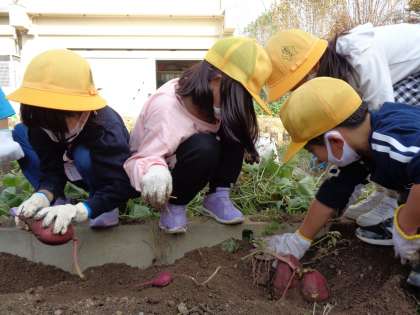 お芋ほりをしました。たくさんとれました。全部で100個ぐらいありました。