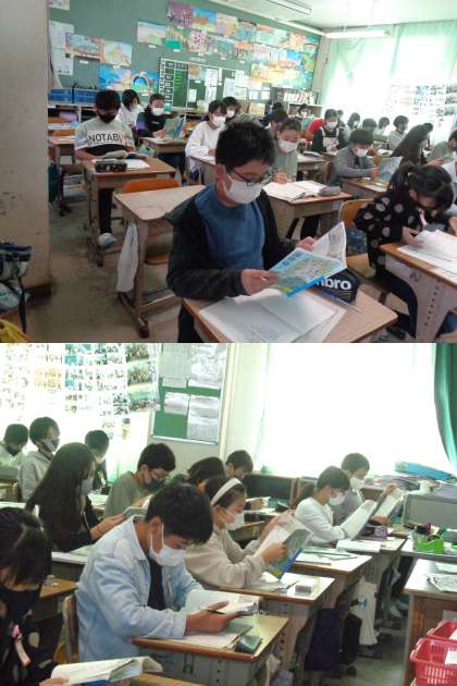 11月5日(金)6年生 公開日 2021/11/05 更新日 2021/11/05 6年 国語『鳥獣戯画を読む』の学習に取り組む1組の児童です。 担任の先生から「漫画の祖」「国宝」「擬人化」という説明がありました。