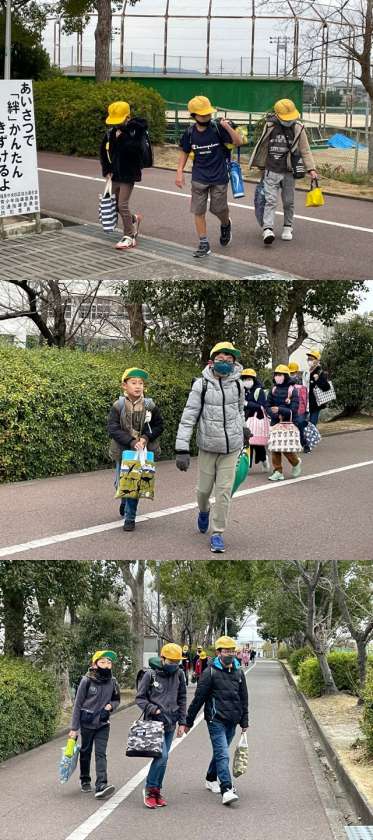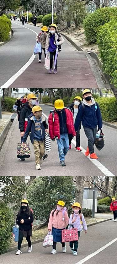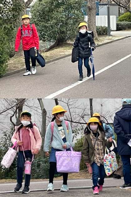 時折,雪が舞う天候ですが子どもたちは元気に登校しています。