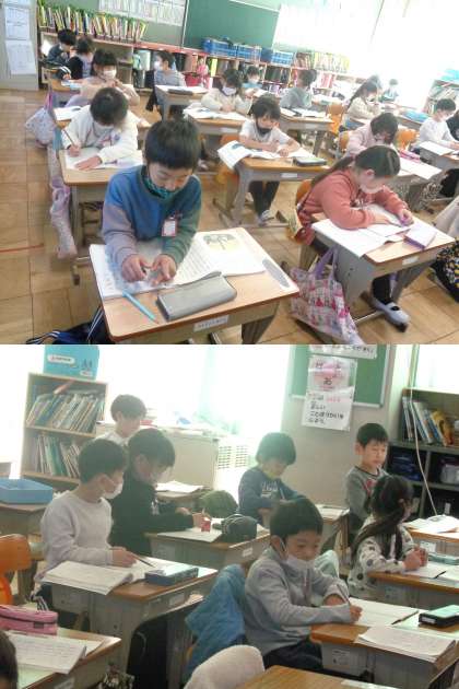 3組は国語の時間です。