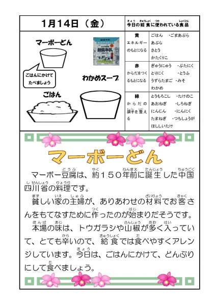1月14日(金)今日の給食
