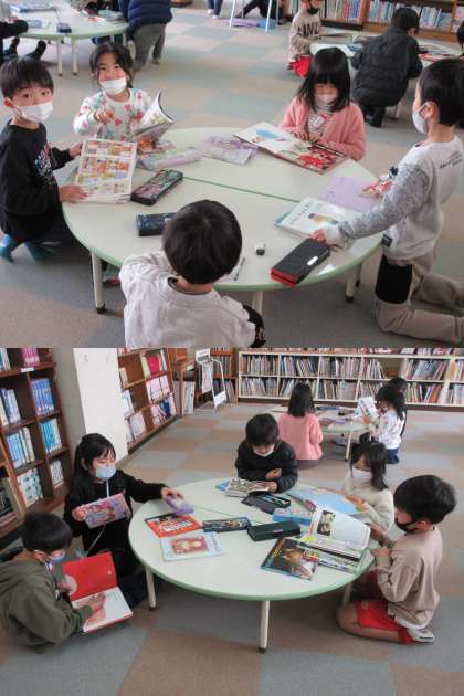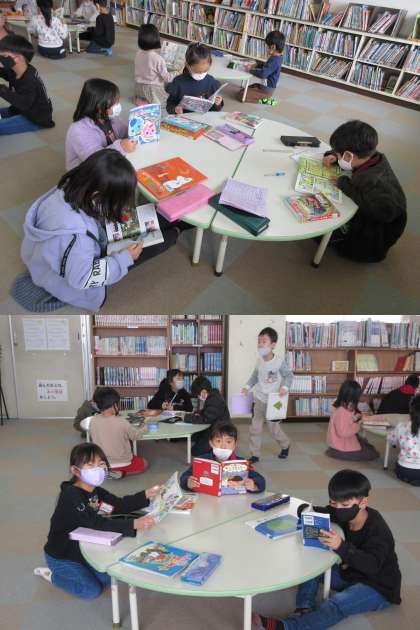 1月18日(火)1年生(1) 公開日 2022/01/18 更新日 2022/01/18 1年 1組は図書の時間でした。 本選びも様々です。すぐに決まって読み出すお友達もいれば,時間ぎりぎりまで悩み選ぶお友達もいました。