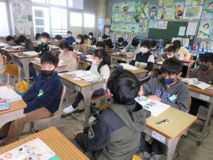 1月20日(木)4年生(3) 公開日 2022/01/20 更新日 2022/01/20 4年 2組の国語の授業です。 『ウナギのなぞを追って』を読んでいきます。 この単元では目的や必要に応じて文章を要約する力を養っていきます。