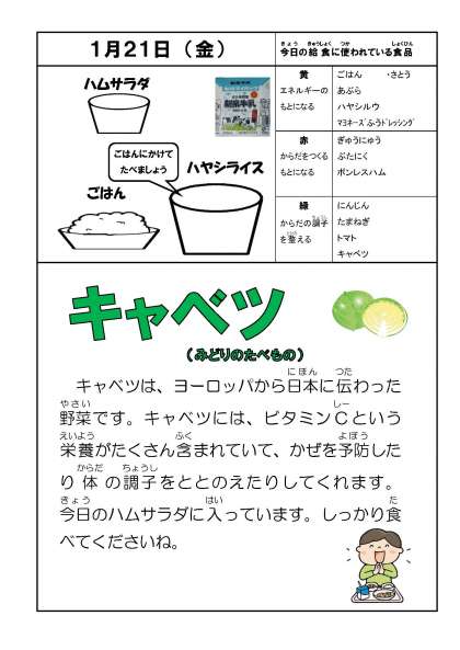1月21日(金)今日の給食