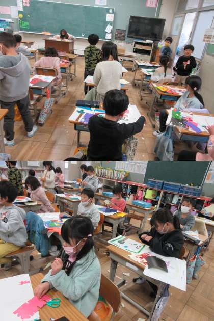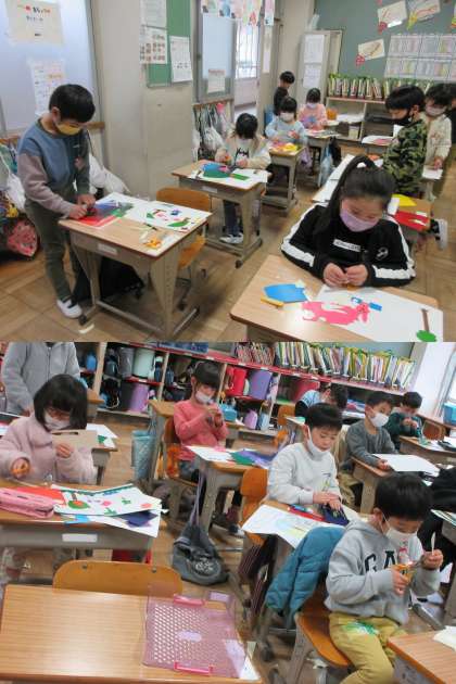 3組は「カラフル動物園」作成中です。