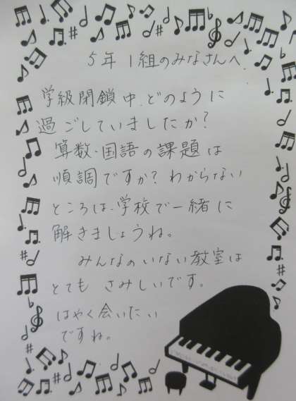 1月28日(金)5年生 担任の先生より