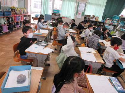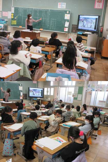 1月31日(月)1年生(2) 公開日 2022/01/31 更新日 2022/01/31 1年 3組もこくごの授業でした。 『どうぶつの赤ちゃん』を学習しています。 ライオンとしまうまを比較し,違いや似ているところを確認していきました。