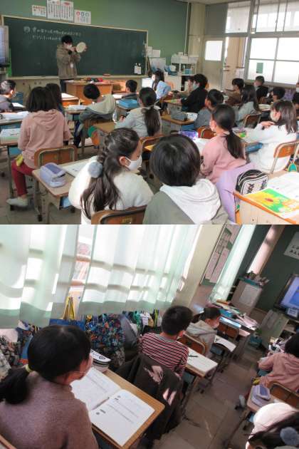 2月1日(火)3年生(1) 公開日 2022/02/01 更新日 2022/02/01 3年 2組の理科の授業です。 今日は「音が出ているときのものの様子がどうなっているか」についての学習です。 トライアングルやタンバリンなどが準備されていました。
