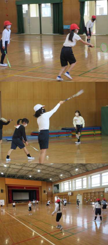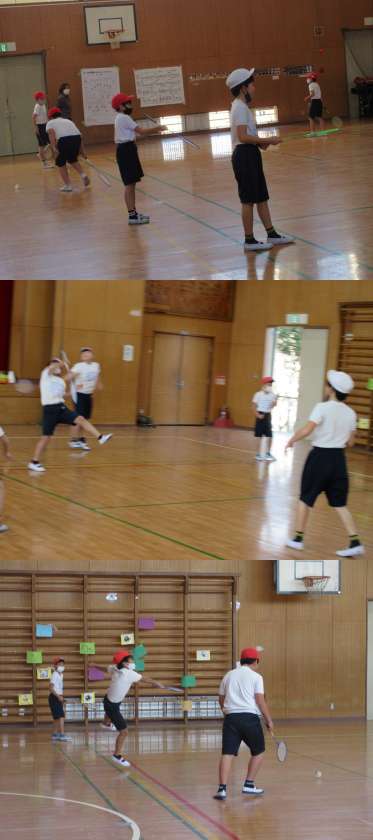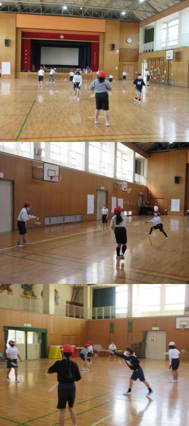 2月1日(火)4年生(2) 公開日 2022/02/01 更新日 2022/02/01 4年 1組は体育館で活動していました。 今日はバドミントンです。最初シャトルがなかなか前に飛ばない人もいましたが,最後には相手と何回もラリーが続くようになっていました。