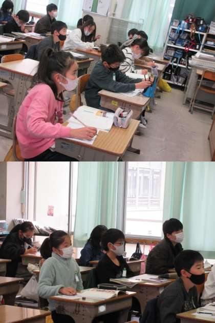 2月3日(木)4年生(1) 公開日 2022/02/03 更新日 2022/02/03 4年 3組の道徳の授業では『より遠くへ』を読み,ねばり強くあきらめずにやり抜く意志を持って目標に向かう強い心情を考えます。
