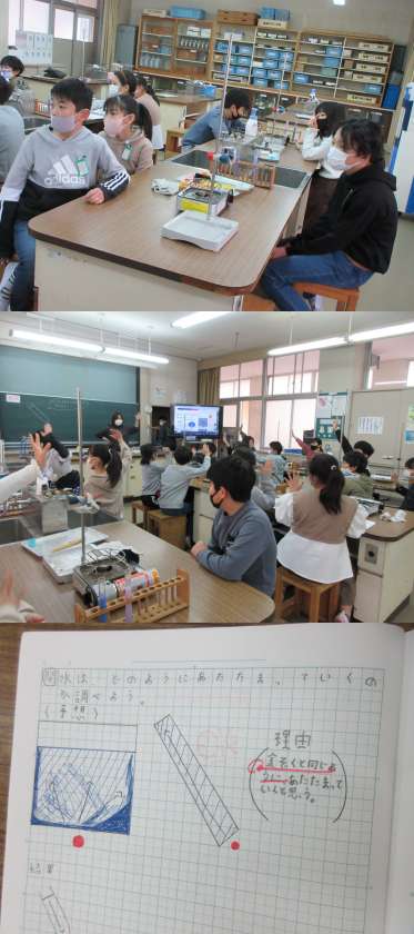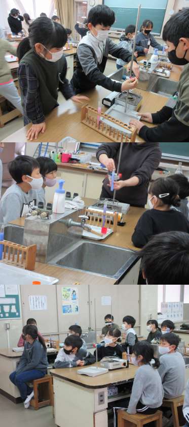 2月3日(木)4年生(2) 公開日 2022/02/03 更新日 2022/02/03 4年 1組の理科です。 水がどのようにあたたまっていくのか調べました。 実験に際して気をつけることなどの説明をしっかり聞いて行いました。