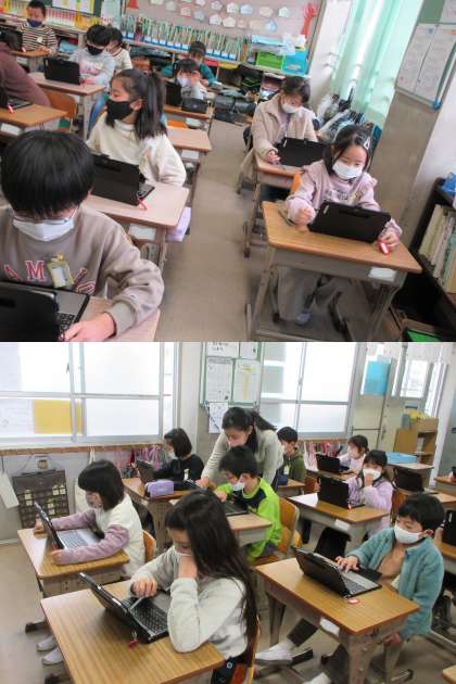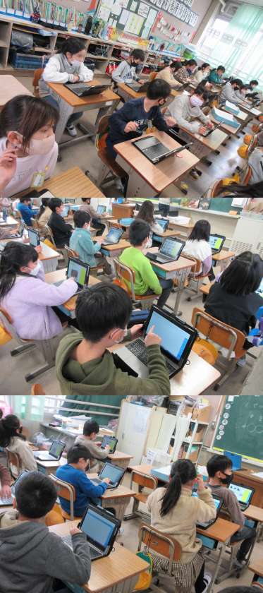 2月3日(木)3年生(1) 公開日 2022/02/03 更新日 2022/02/03 3年 昔の道具調べをしている1組の様子です。 タブレットを使って気になる道具を調べました。シンプルなプレゼンテーションにもチャレンジするのかな。