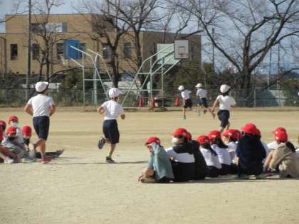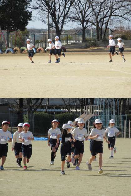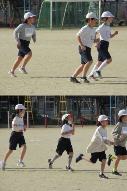 今日は1組2組の合同体育です。 まずは6分間走の様子です。