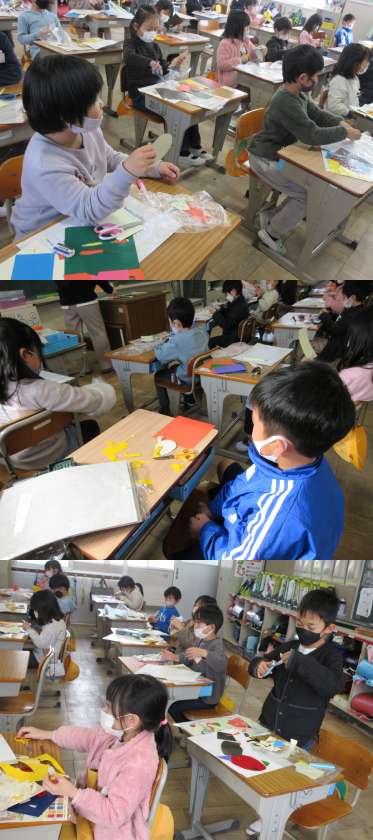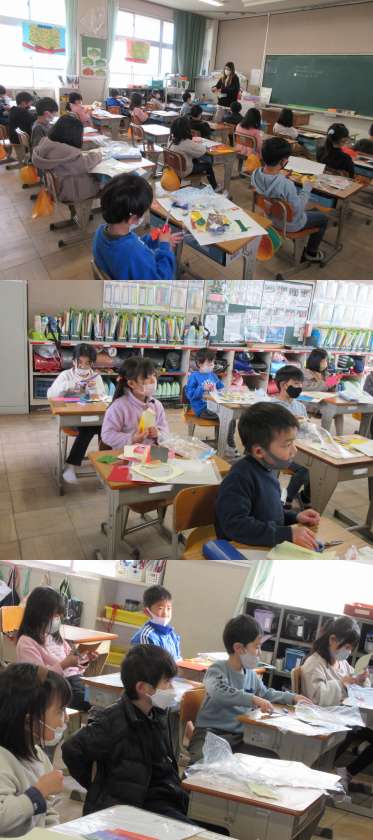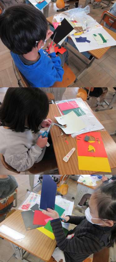 2月4日(金)1年生(1) 公開日 2022/02/04 更新日 2022/02/04 1年 図工の時間でカラーはんがをがんばっている1組の子どもたちです。 「カラフルどうぶつとじぶん」と題して作品を作っています。