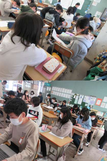 2月7日(月)6年生(1) 公開日 2022/02/07 更新日 2022/02/07 6年 一週間ぶりの登校となった6年生です。 2組の国語では、『今、私は、ぼくは』を通して、卒業を前に将来どんな夢を思い描いているのか、今の自分の思いを伝える活動の中で自分の考えが相手に伝わるように取り組んでいました。