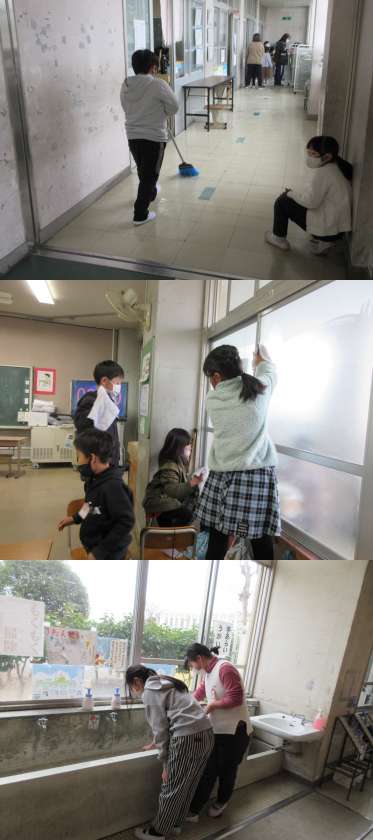 もくもく清掃の時間です。自分の持ち場を責任をもって取り組んでいます。