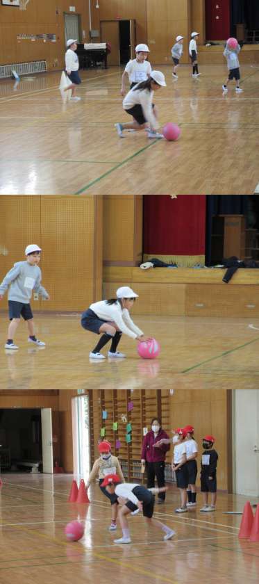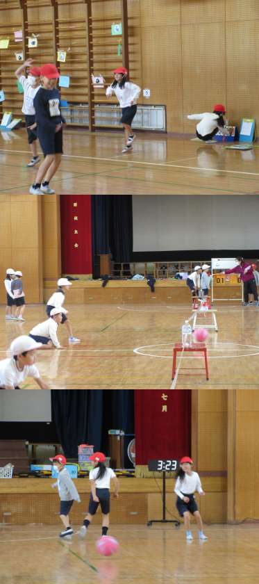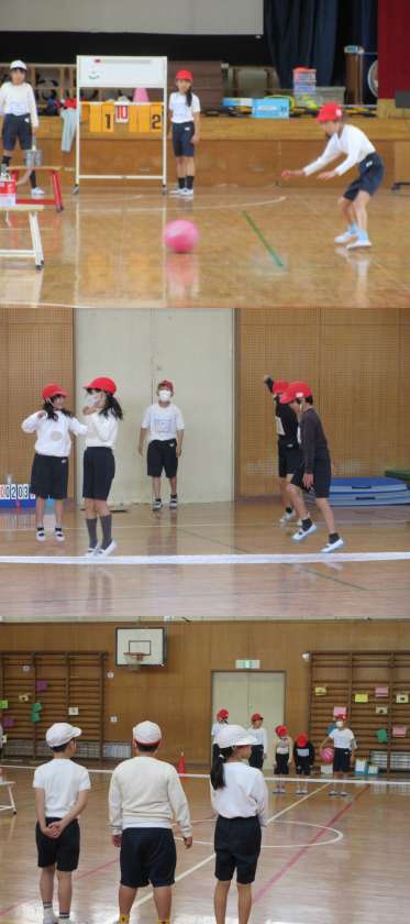 1組の体育は「コロコロバレーボール」です。チームで作戦を考えて楽しくゲームができたかな。