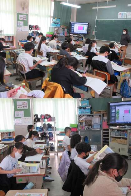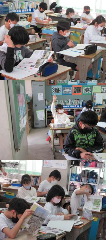 2月21日(月)4年生 公開日 2022/02/21 更新日 2022/02/21 4年 今日から学級再開した1組の子どもたちの様子です。 総合の時間では柏原市の自然環境について学習していました。 山や斜面が多い地形で行われているぶどう作りなどの特色について考えました。