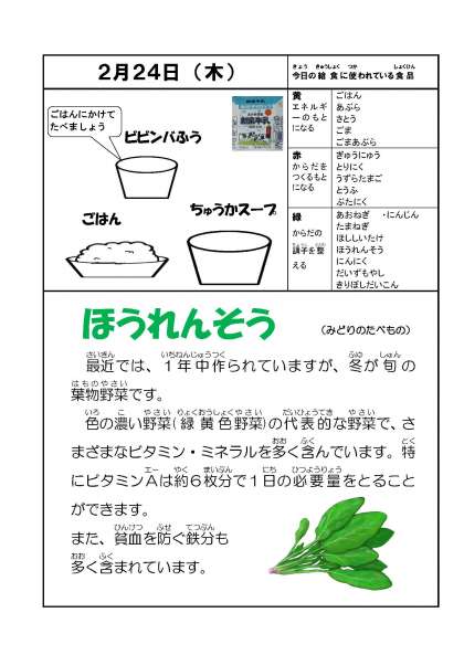 2月24日(木)今日の給食