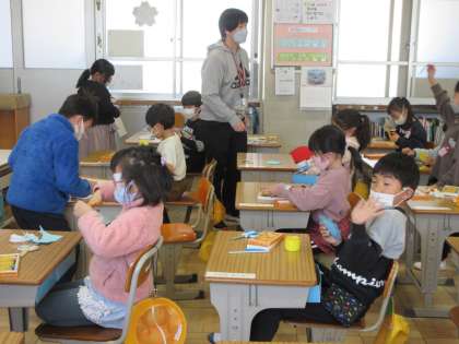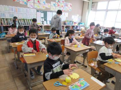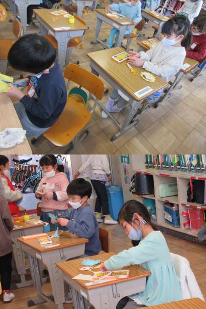 2組は,6年生への感謝の気持ちを込めてプレゼント作りを行っていました。