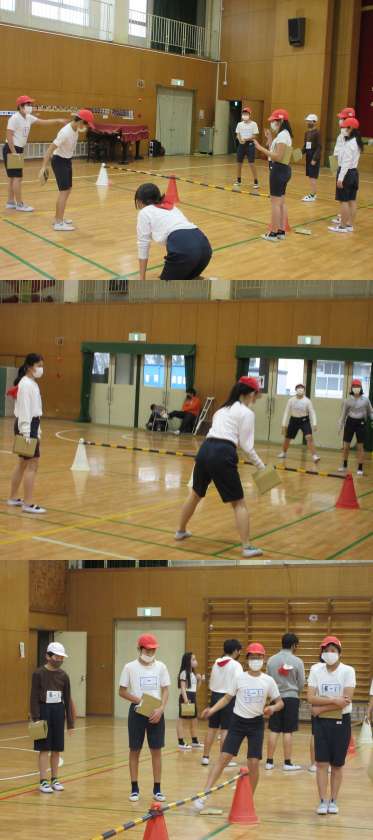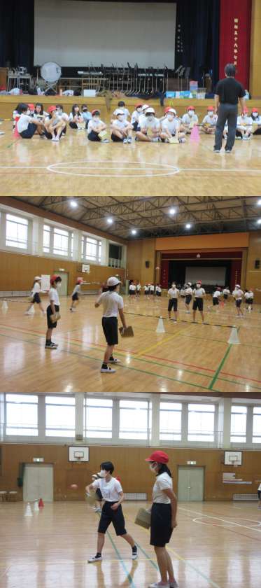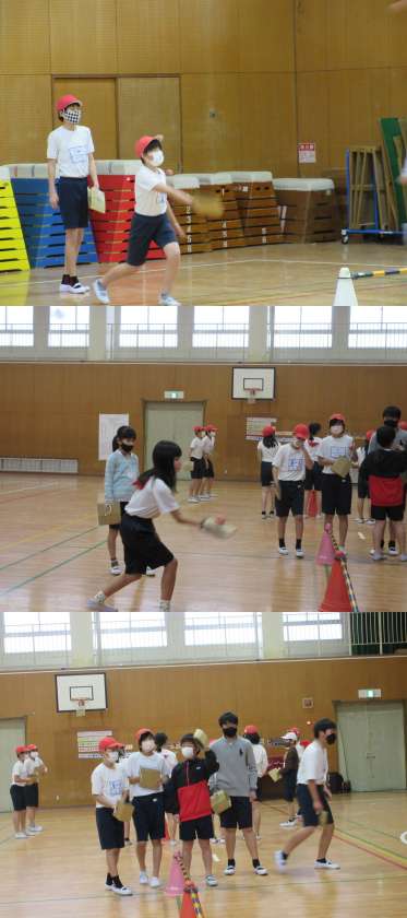 楽しそうに「テニピン」を行う1組の子どもたちです。ラリーが続くとより一層楽しいですね。