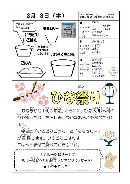 3月3日(木)今日の給食