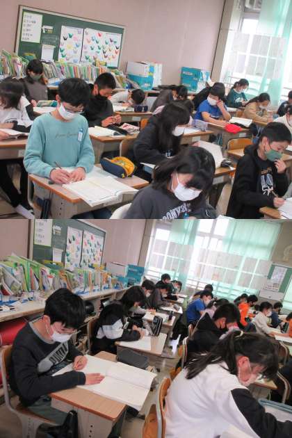 3月4日(金)5年生 公開日 2022/03/04 更新日 2022/03/04 5年 1組の国語の授業です。 『大造じいさんとガン』の中で効果的に用いられている表現を選んでこの物語の魅力についてまとめています。