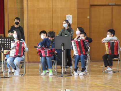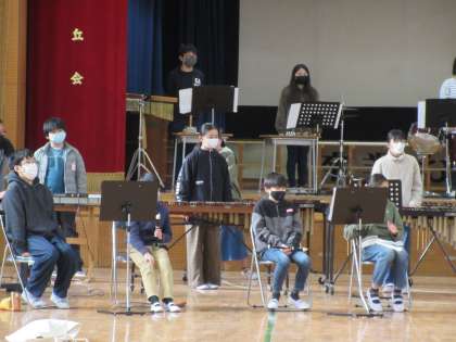 2組は体育館で合奏の練習を行っていました。 10日(木)の本番に向けていよいよラストスパートですね。
