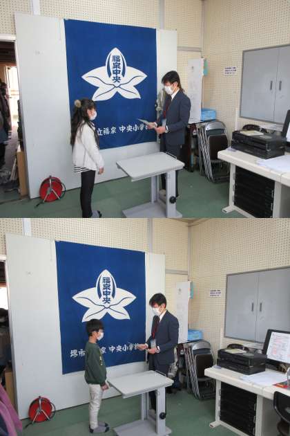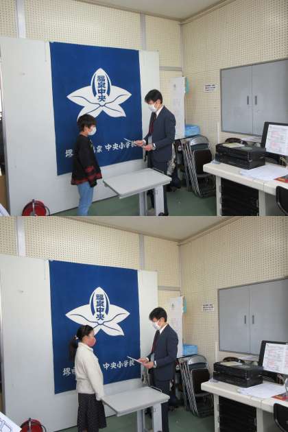 昨日のテレビ朝会の様子です。 中央学びンピックと堺っ子書道展の表彰がありました。