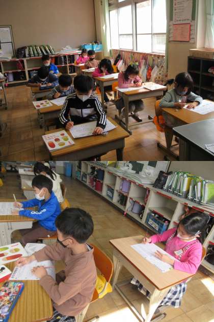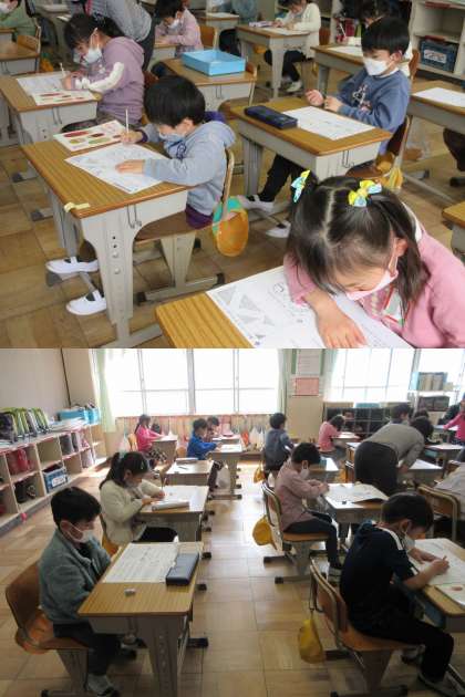 2組はさんすうの1年間のまとめ問題にチャレンジしていました。