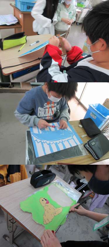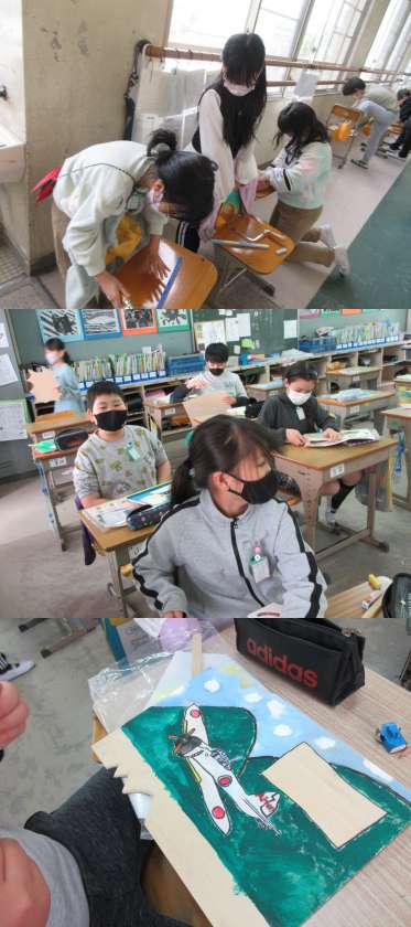 オリジナルホワイトボードを作成している1組の子どもたちです。