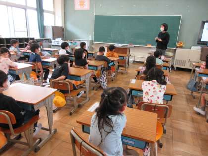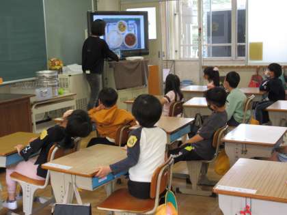 今日は栄養教諭の先生から給食についてのお話を聞きました。