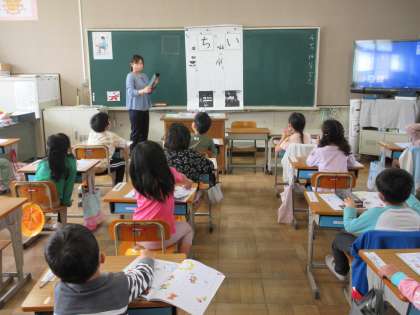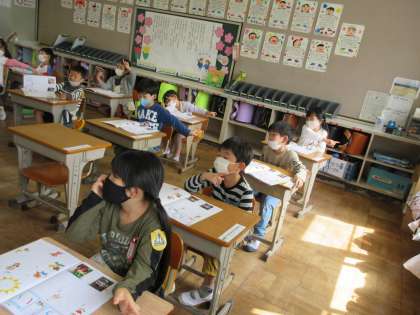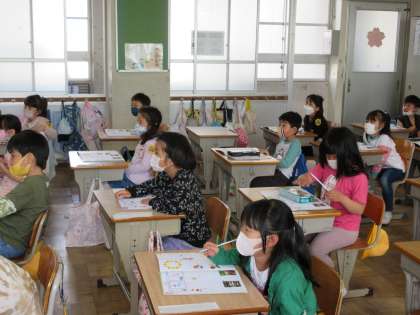 「い」というひらがなの学習では,担任の先生から書く際の「字のバランス」についてのお話があり,実際にお手本を見せてもらいました。