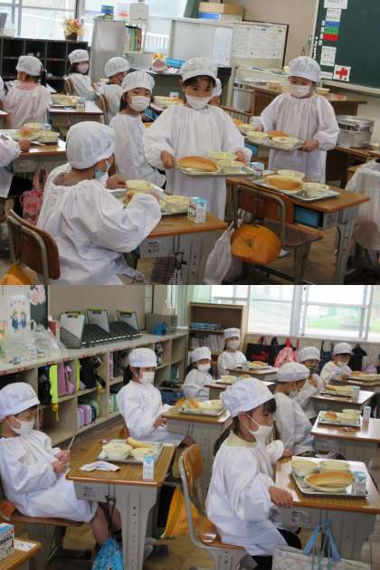 おなかがへったね。もうすぐ「いただきます」の時間です。