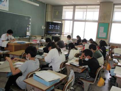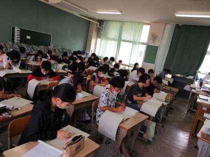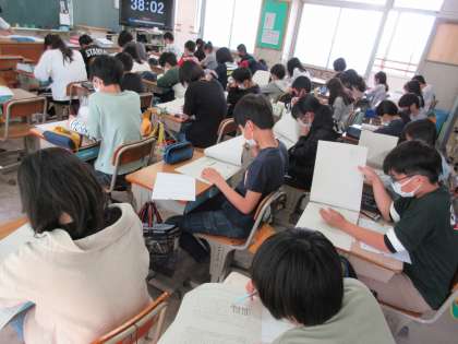 2組は明日の全国学力学習状況調査テストに向けて,過去の問題にチャレンジしていました。