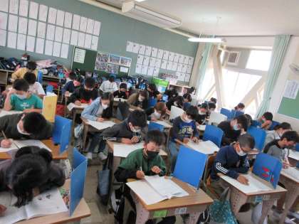 真剣な表情で取り組む6年生です。