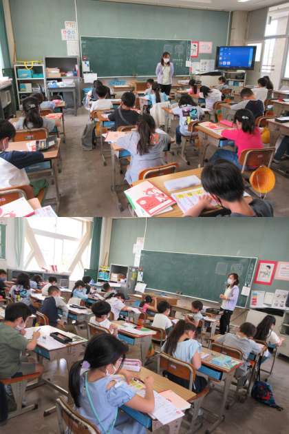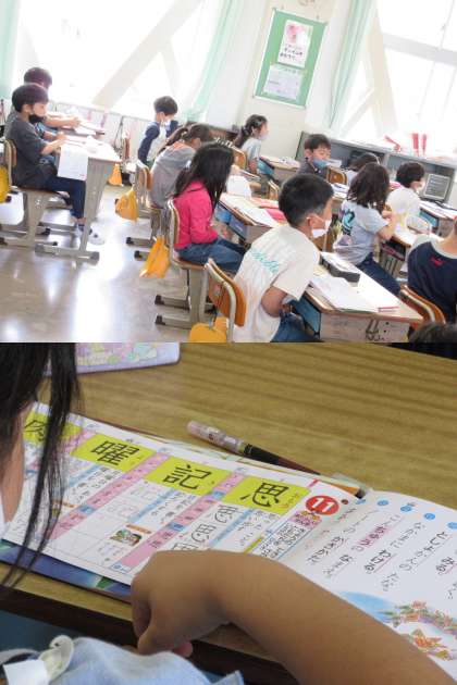 国語の時間で漢字の学習に取り組む2組の子どもたちです。