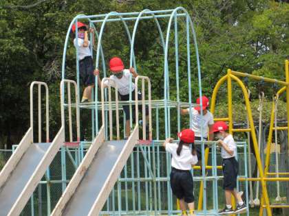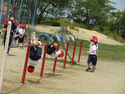 3組の体育の時間です。 上手に鉄棒で回ることができるお友だちもいました。