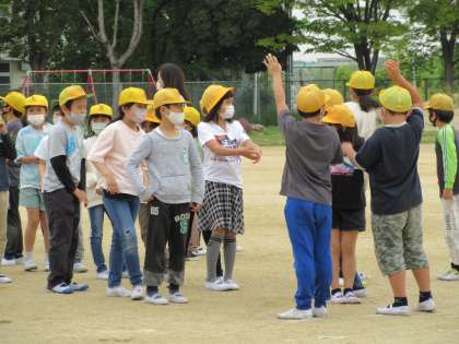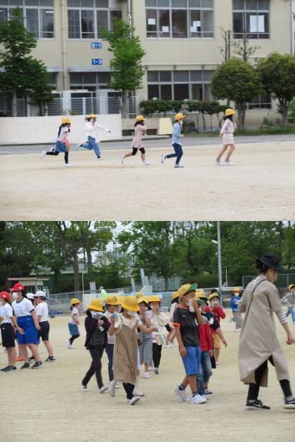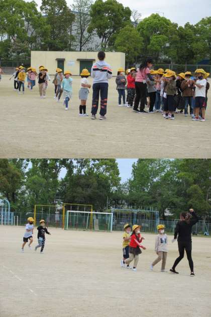 今年度第1回の避難訓練を実施しました。 押したりしゃべったりせず落ち着いて行動できました。