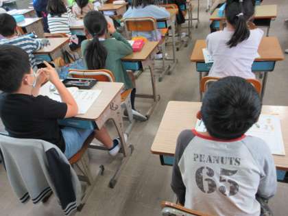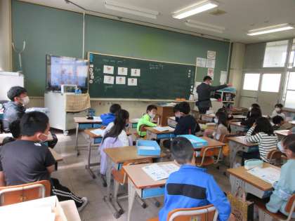 2組の外国語活動です。 「How are you ?」から始まるコミュニケーションの方法を学習しています。