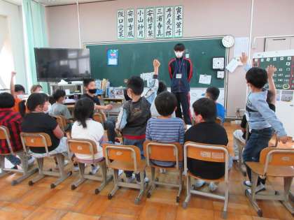 5月6日(金)いずみ学級 公開日 2022/05/06 更新日 2022/05/09 いずみ学級 2時間目,朝の会の様子です。 今日から毎週金曜日に来てくれるインターンシップ生が自己紹介を行いました。 子どもたちはたくさん質問をしました。