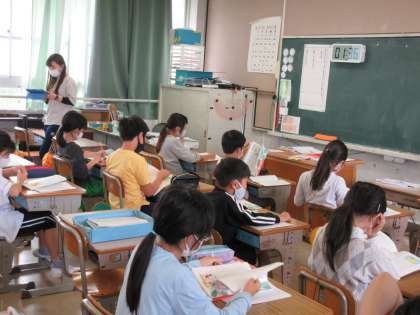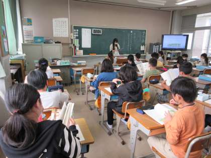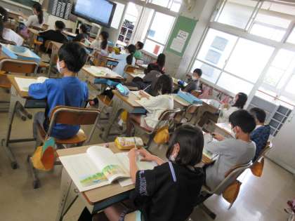 2組の国語の時間です。 『白いぼうし』の女の子が「ちょう」であると言えるわけを考えていきました。