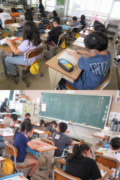 「お話のふしぎについて話し合った後の感想を書こう」というめあてで学習をしている1組子どもたちです。初めの感想と比べるといろんな発見がありそうですね。