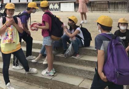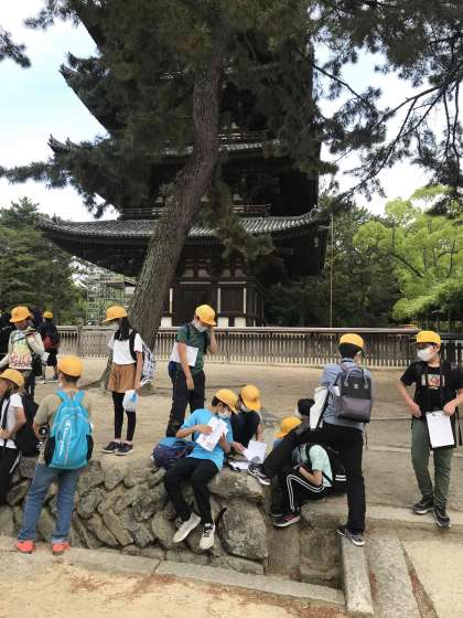 全員無事ゴールの興福寺に着きました。 もうすぐ帰りのバスに乗ります。