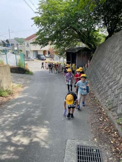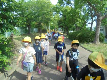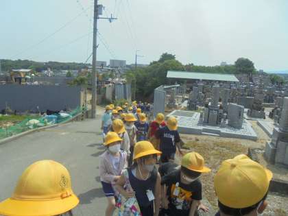 2回目の校区たんけんに行きました。暑い中でしたが、校区内の公園やお墓などいろいろな物を見て回ることができました。