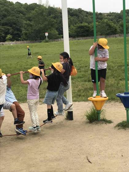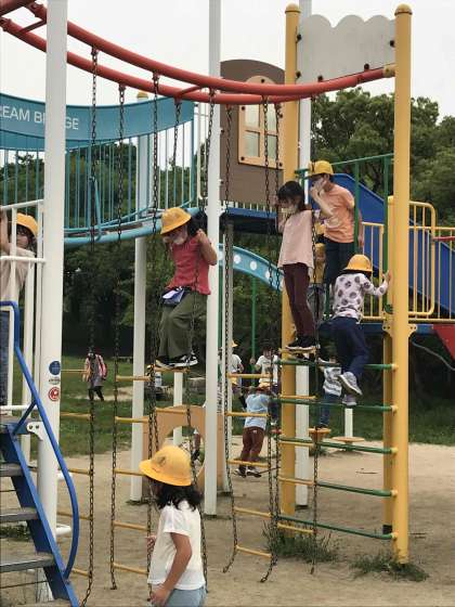 遊具で遊んだり、鬼ごっこをして楽しんでいます。