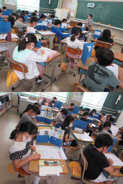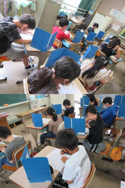 わり算のテストです。早くできた人もしっかり見直していました。