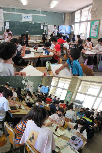2組の理科です。 「食べ物は口の中でどのようにへんかするのか」について,だ液によるでんぷんの変化を調べました。
